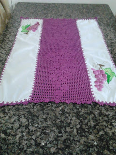 caminho de mesa de pintura e bico feito em croche,com fio anne, nas cores branca,vermelha,bordo e verde.