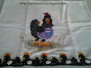 pano de prato pintura de galinha.Com bico feito com fio anne da circulo galinha