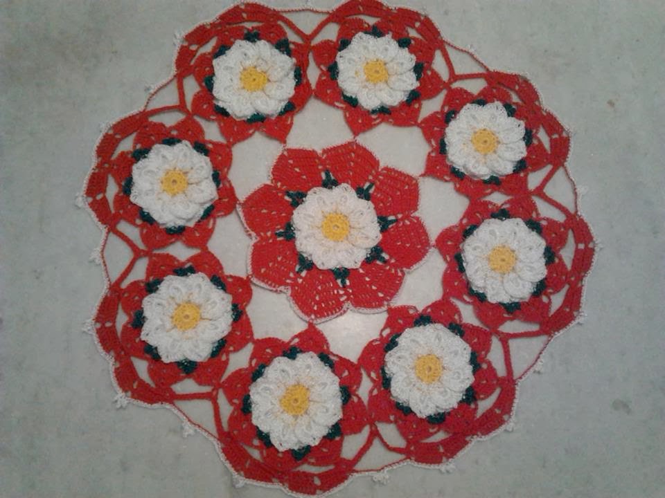 Toalha centro de mesa com flores margarida bicuda.